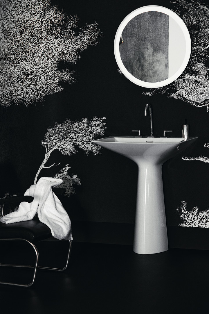 Ideal-Standard Säulenwaschtisch i.life A 74x47x90cm, 3 Hahnlöcher, mit Überlauf, schwarz glänzend W34768