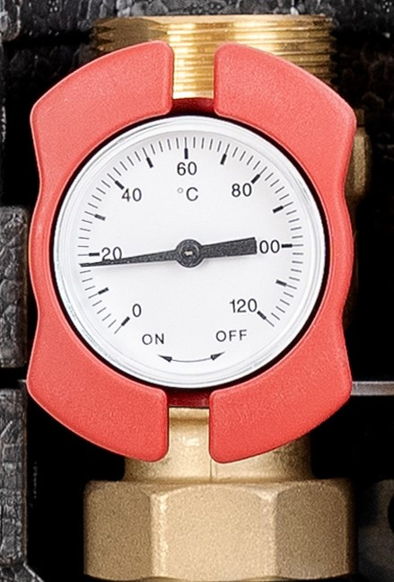Tuxhorn Kugelhahn tubra DN 25, Vorlauf, mit SKB, Griff rot