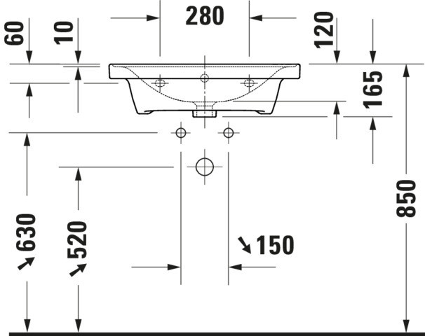 Unterseite glasiert, für Artikel Nr. 236760, 236765, 236710 0060 Raumsparsiphon wird empfohlen in Verbindung mit Waschtischunterbau, für Artikel Nr. 236710 zur Befestigung von Waschtischen ab der Größe 100 cm werden zwei Befestigungen mit der Artikel Nr. # 6951000000 benötigt