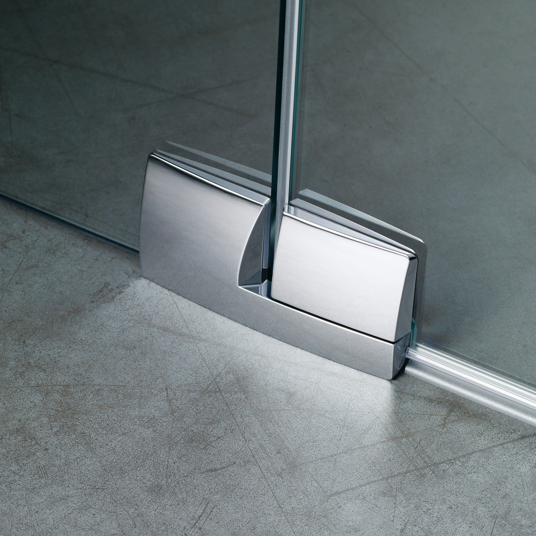 Glas 8 mm ESG, Standardhöhe 200 cm bzw. plus 3 cm Verstrebungsbügel, Tür öffnet nach Innen und Außen, alternativ mit 4 mm oder 15 mm hoher Schwallschiene, PALM.free, PALM.fix, PALM.lift, PALM.pro, PALM.isi-clean, optional: PALM.nano, PALM.care, PALM.magic, durchgehendes Wandbefestigungsprofil mit Verstellbereich