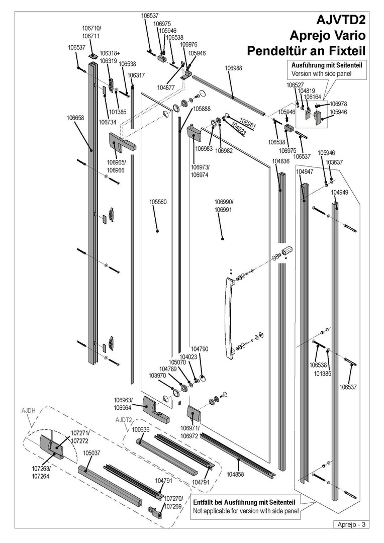 Palme Pendeltür Aprejo Vario Nischeneinbau 148 x 200 cm, rechts, ESG transparent, schwarz, an Fixteil