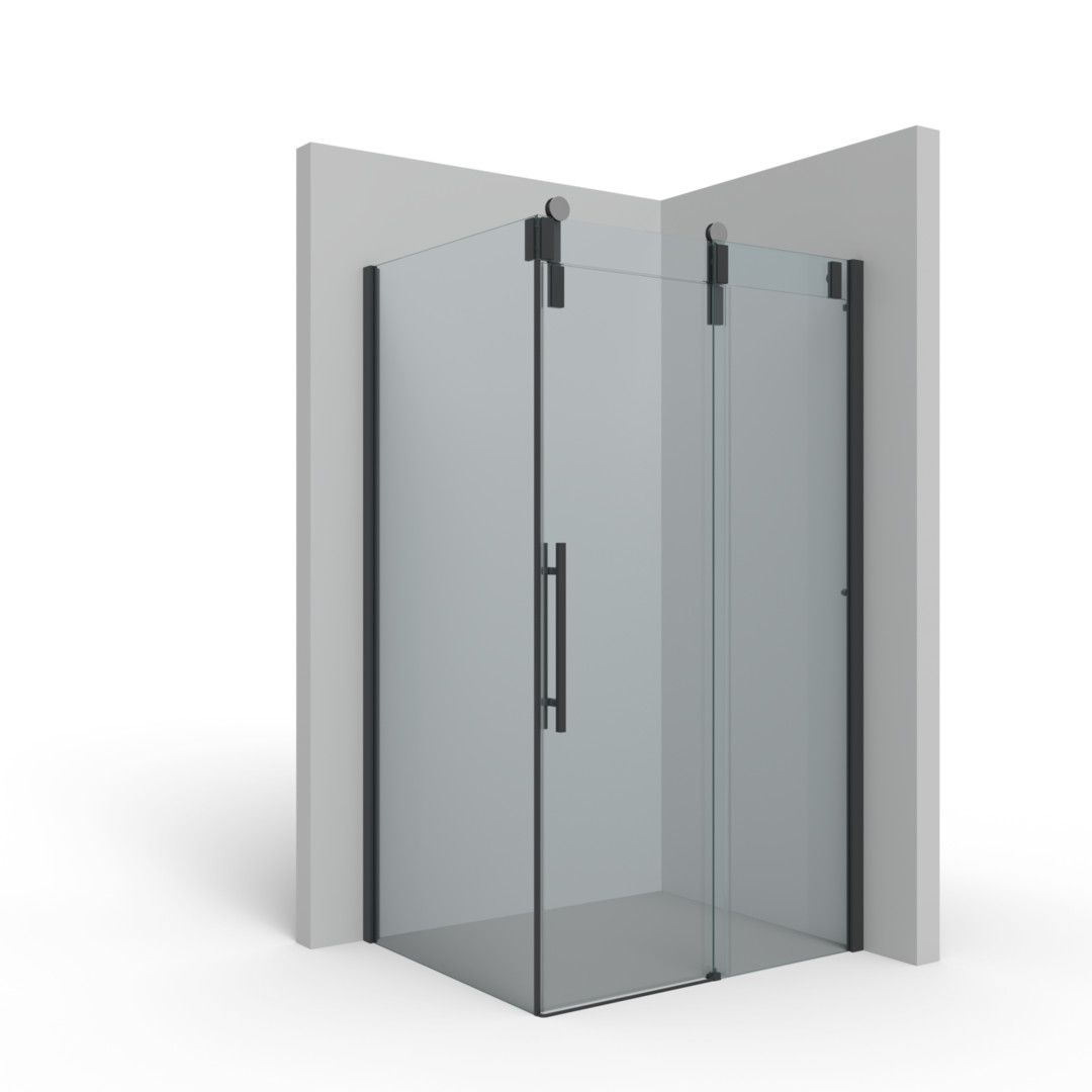 Palme Schiebetür Piana Slide Vario Verwendung mit Seitenteil 148,5 x 212 cm, rechts, AK ESG nano, schwarz, 2-teilig