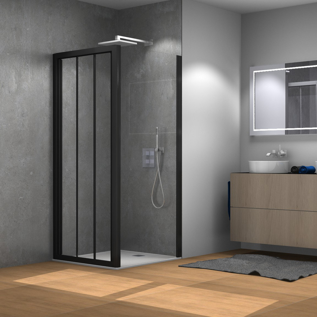 Palme Schiebetür Drive 1.0 3-teilig, 72/73,5/72 x 200 cm, ESG transparent, schwarz W243236