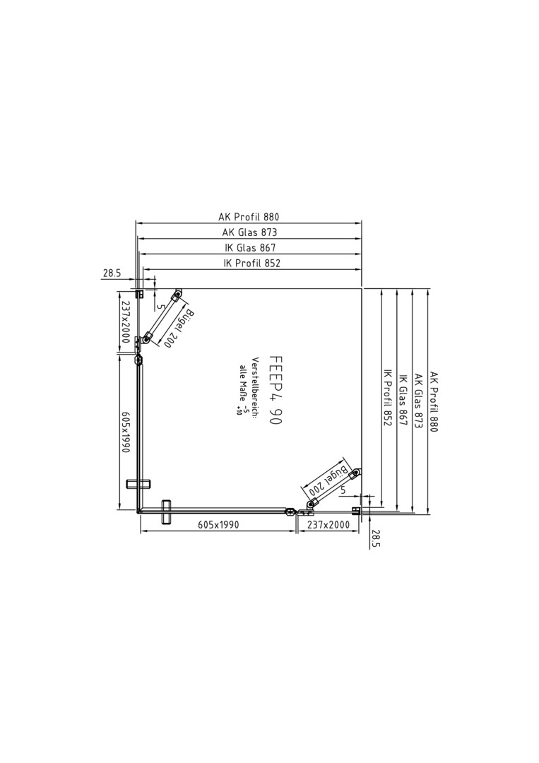 Palme Eckeinstieg Ferox 73,5 x 200 cm, AK ESG transparent, cenit-chrom, 4-teilig W232181