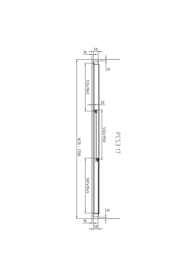 | Einbaubreite Tür für die Nischenmontage | 1670 - 1700 mm |