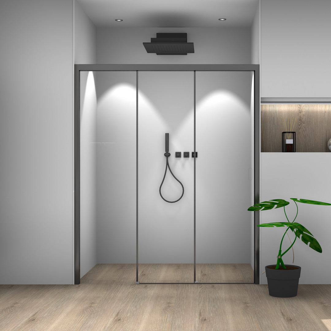 Palme Schiebetür Nischeneinbau Piana X-Free 167 x 200 cm, links, ESG transparent, schwarz, 3-teilig