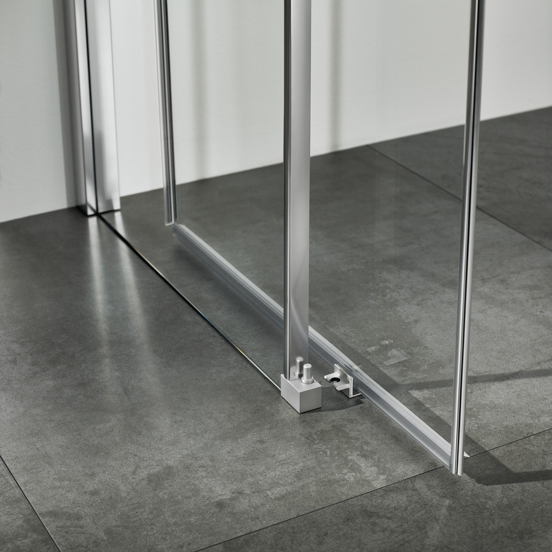 Glas 6 mm ESG transparent, Standardhöhe 2000 mm, Schiebeelemente ein Teil fest, zwei Teile verschiebbar, optional mit Bodenleiste (Wasserschwallleiste), PALM.free, PALM.fix, PALM.lift, PALM.motion, PALM.isi-clean, optional PALM.nano, PALM.care