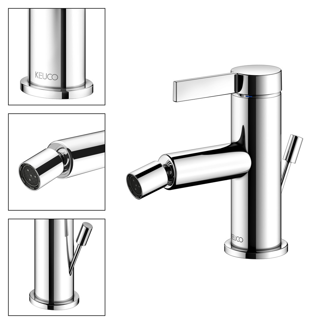 KEUCO Bidet-Einhebelmischer IXMO Pure Ausladung 110mm, mit Ablaufgarnitur, verchromt W340307