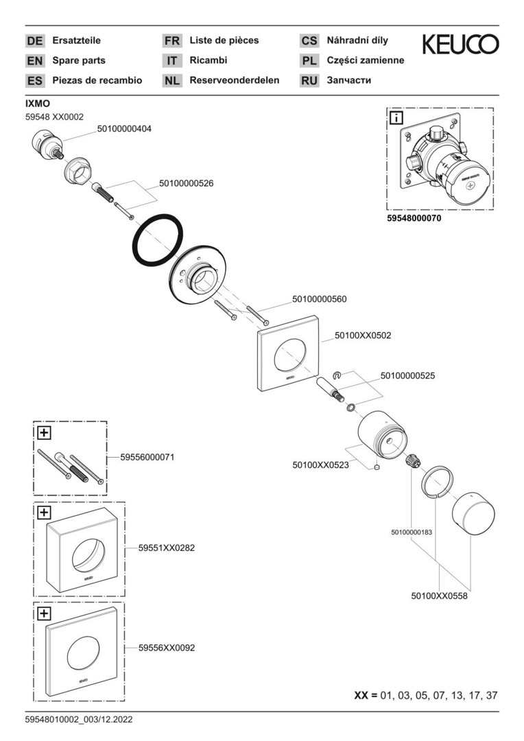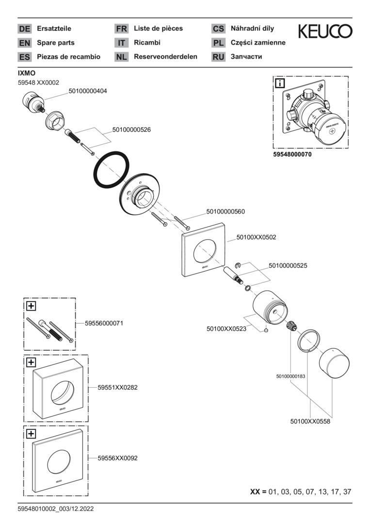 KEUCO Fertigmontageset IXMO Pure UP-3-Wege-Umstellventil, eckig, verchromt W340497