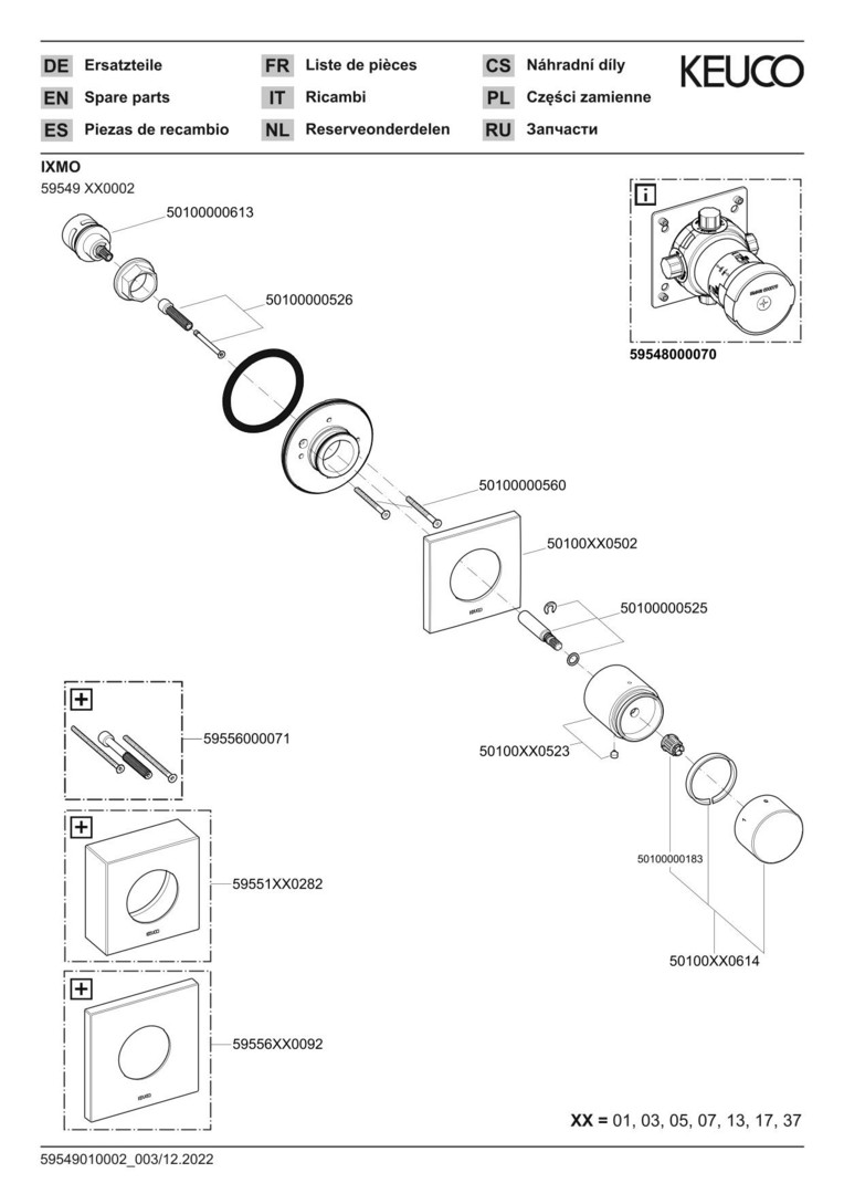 KEUCO Fertigmontageset IXMO UP-3-Wege-Ab-und Umstellventil, Griff Pure, eckig, verchromt W340545