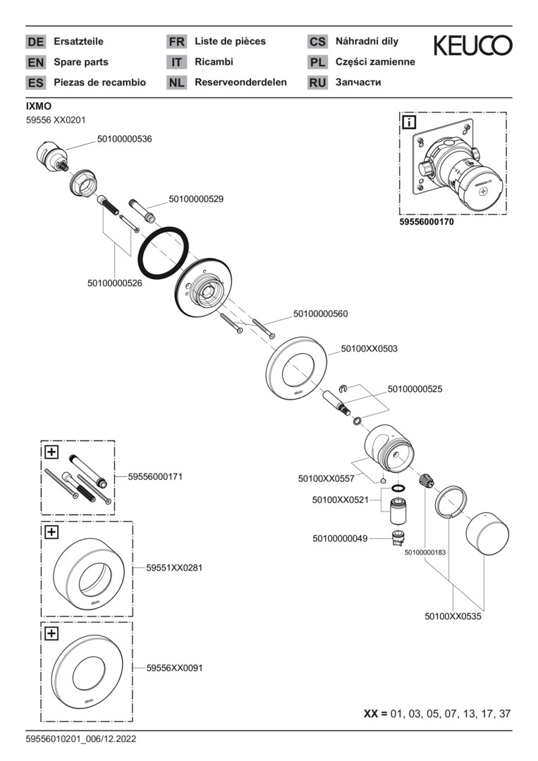 KEUCO Fertigmontageset IXMO Pure UP-2-Wege-Umstellventil, rund, Schlauchanschluss/Brausehalter, verchromt W340670