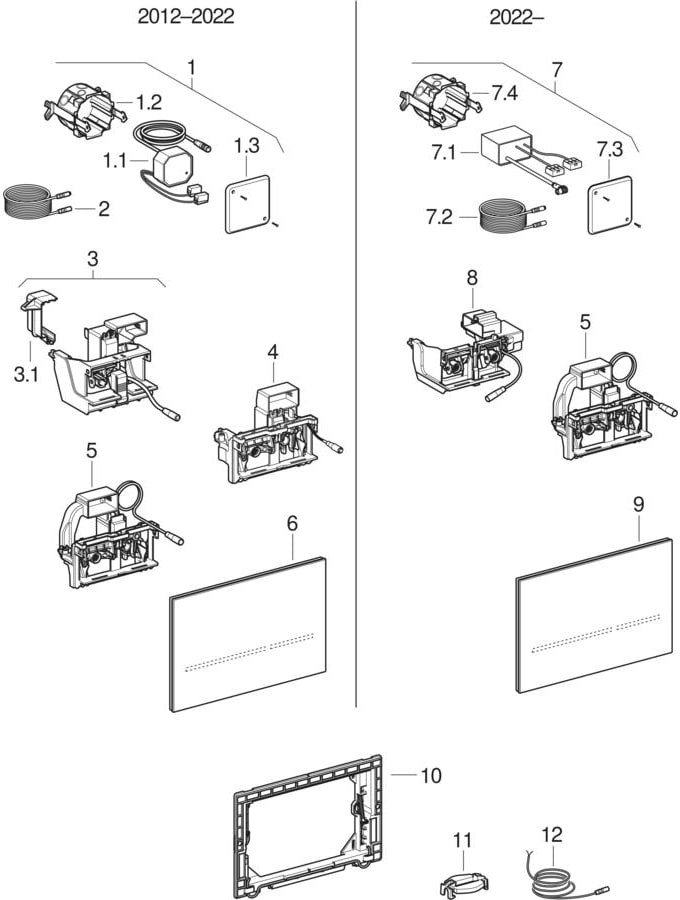 mit elektronischer Spülauslösung, zur berührungslosen Spülauslösung von Sigma UP-Spülkästen 12 cm, für private und halböffentliche Bereiche, Intervallspülung einstellbar, manuelle Spülauslösung (berührungslos), automatische Spülauslösung aktivierbar, Spülauslösung über externen Taster möglich, Betätigungsplatte ohne mechanische Tasten, Tasten durch Lichtbalken erkennbar, Tastenbeleuchtung aktiviert sich beim Herantreten, in fünf Farben einstellbar, Orientierungslicht zuschaltbar, Stromversorgung durch externes Netzteil, Transformation der Netzspannung auf Kleinspannung 12 V DC, Betrieb mit Kleinspannung, keine Netzspannung im Spülkasten, mit verwechslungssicherer Steckverbindung, IR-Distanzerkennung, Erfassungsbereich der Benutzererkennung einstellbar, Vorspülung einstellbar, Geräteeinstellungen und Bedienung mit Mobilgerät über integrierte Bluetooth®-Schnittstelle, mit Control App kompatibel, Spülauslösung über Clean-Handy deaktivierbar, elektrische Hebevorrichtung selbstkalibrierend, verriegelbar, bestehend aus Betätigungsplatte Sigma80, Befestigungsrahmen und Lagerbock mit Servomotor und Hebevorrichtung (vormontiert)