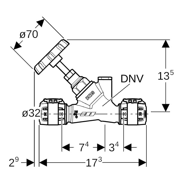 Geberit Schrägsitz-Absperrventil FlowFit Ø 32 mm W535274