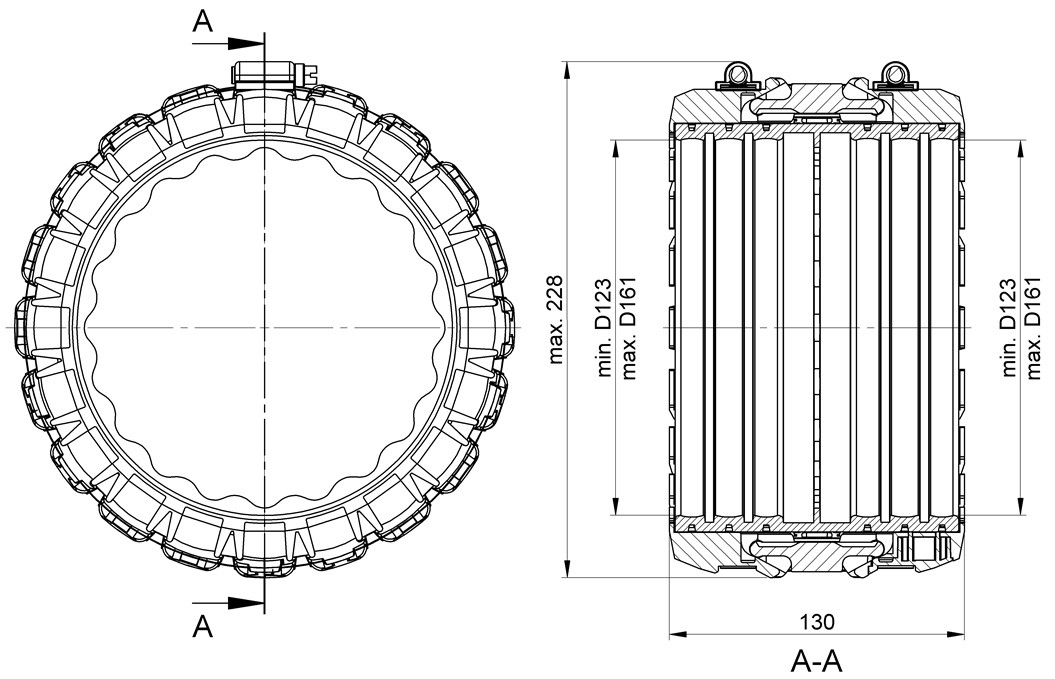ATEC Kraftschluss-Manschette Spannbereich 123-161 mm, 130 mm, bis 120 Grad