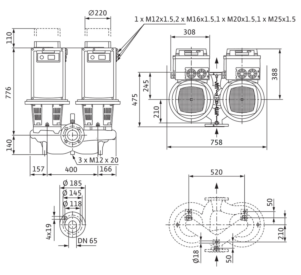 Wilo Trockenläufer-Hocheffizienz-Doppelpumpe Stratos GIGA-D 65/3-49/15-R1-S1, ohne Differenzdruckgeber W829754