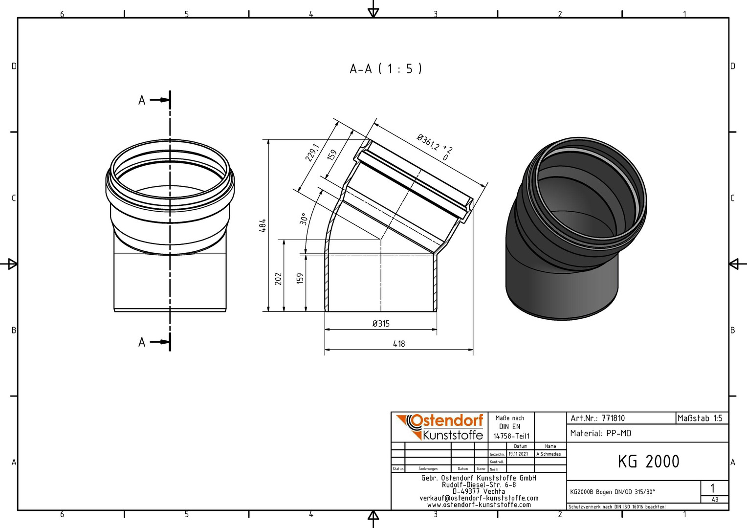 Ostendorf KG2000 Bogen B DN/OD 315, 30Grad