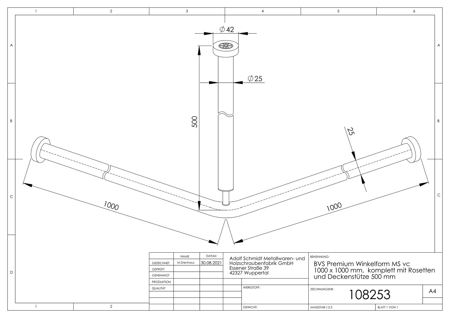 komplett mit Rosetten, individuell ablängbar, mit Deckenstütze 500 mm