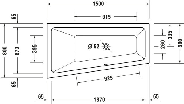 Duravit Trapez-Badewanne No. 1 150 x 80 x 46 cm, Einbauversion, 1 Rückenschräge links, weiß W207051
