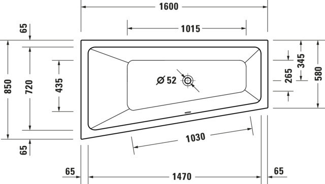 Duravit Trapez-Badewanne No. 1 160 x 85 x 46 cm, Einbauversion, 1 Rückenschräge links, weiß
