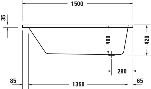 Duravit Whirlwanne No. 1 150 x 70 cm, 95 l, Einbauversion, mit 1 Rückenschräge, weiß W207941