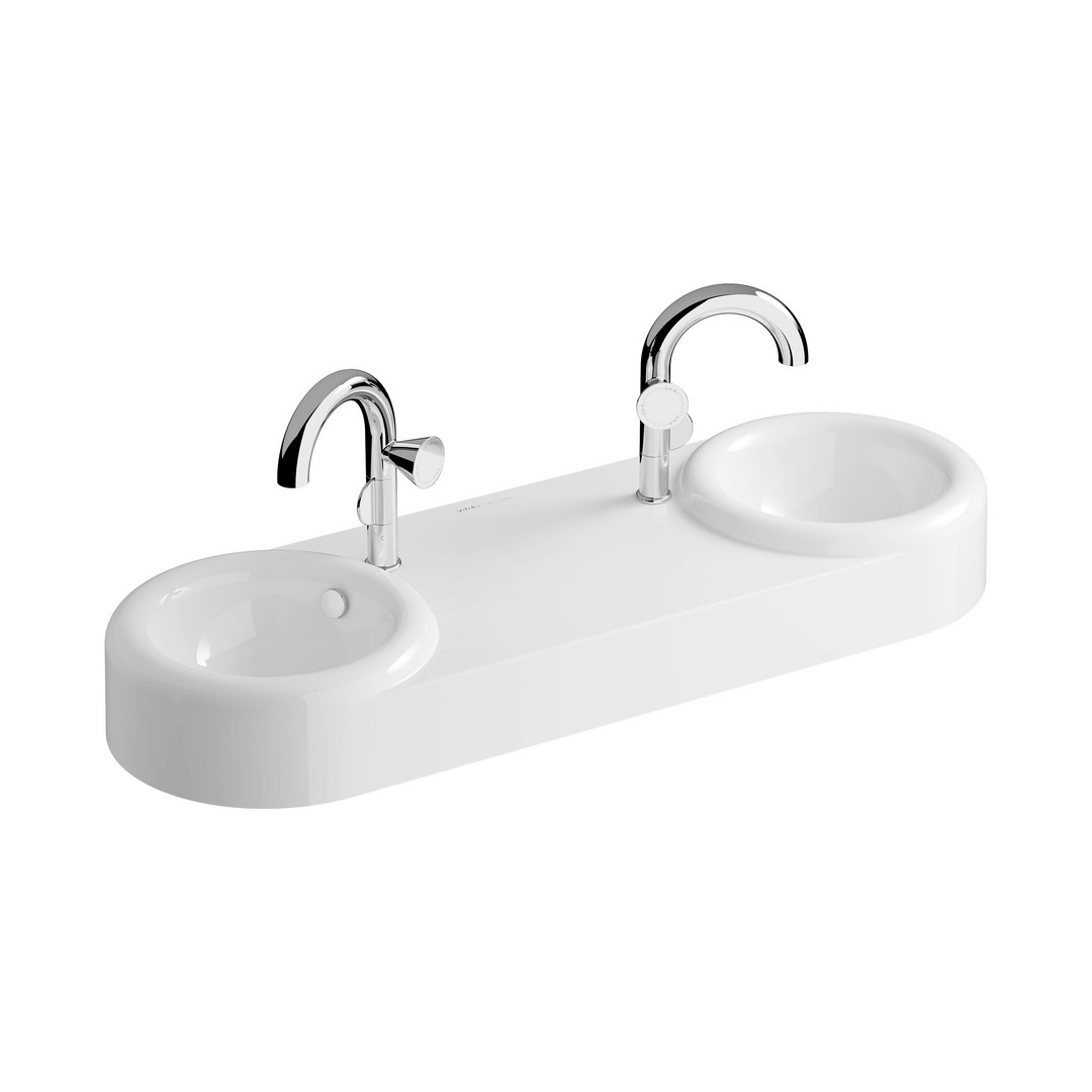 VitrA Bad Doppelwaschtisch Liquid 119x39,5x15cm, mit Überlauf, weiß hochglanz VC, ohne Hahnloch W57421