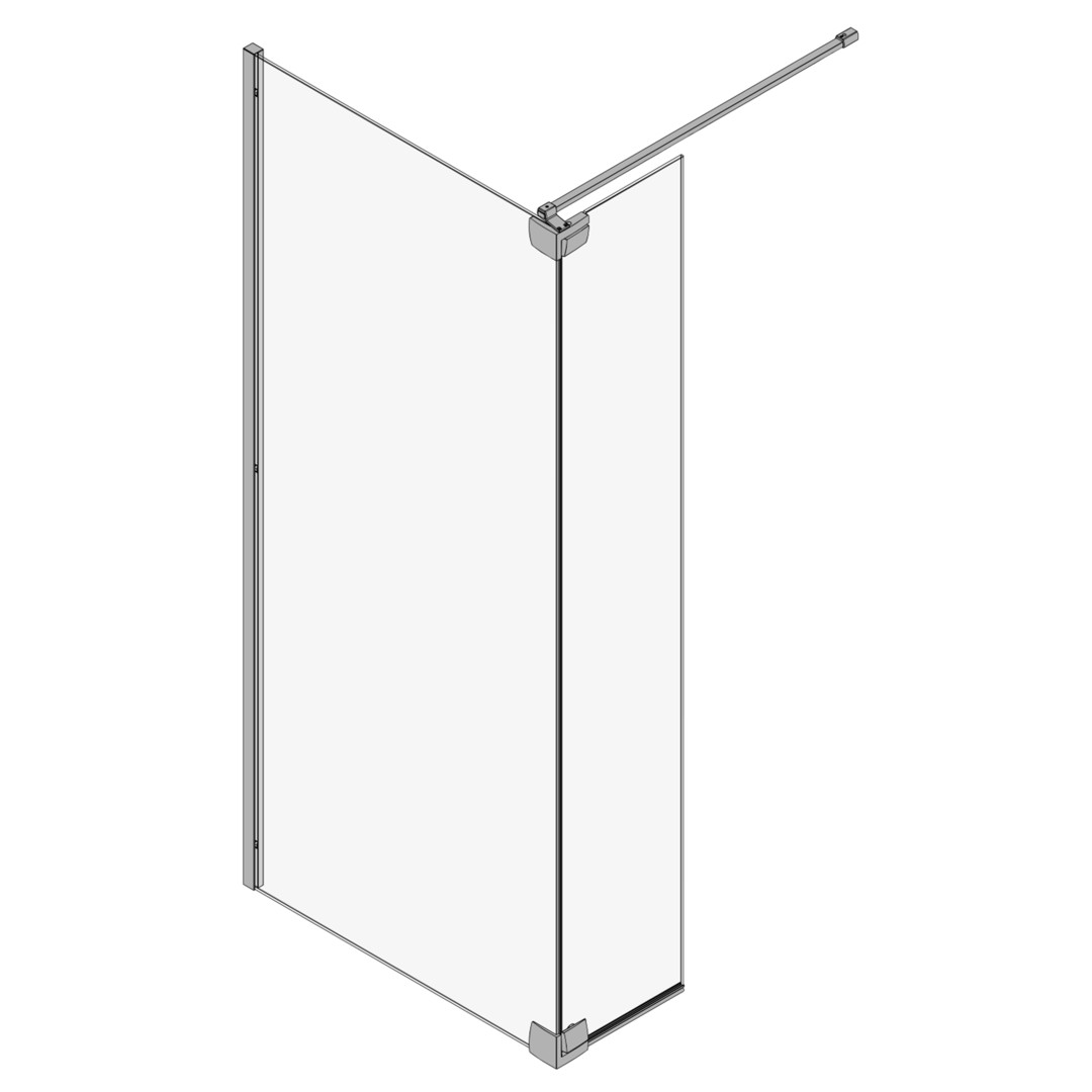 Glas 8 mm ESG, Standardhöhe 200 cm plus 3 cm Verstrebung, Länge Verstrebungsbügel 120 cm (ablängbar), Klappelement (Breite 30 cm), 180° schwenkbar= 90° nach Innen und Außen, Montage auf Fliesenboden, PALM.lift, PALM.pro, PALM.free, PALM.isi-clean, optional: PALM.nano, PALM.care, PALM.magic, durchgehendes Wandbefestigungsprofil mit Verstellbereich
