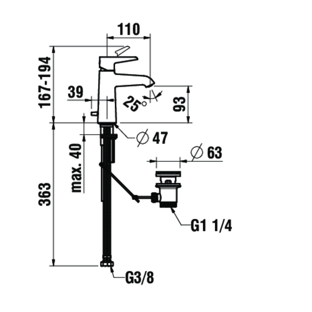 Laufen Waschtisch-Einhebelmischer PURE Festauslauf 110mm, mit Ablaufventil, chrom
