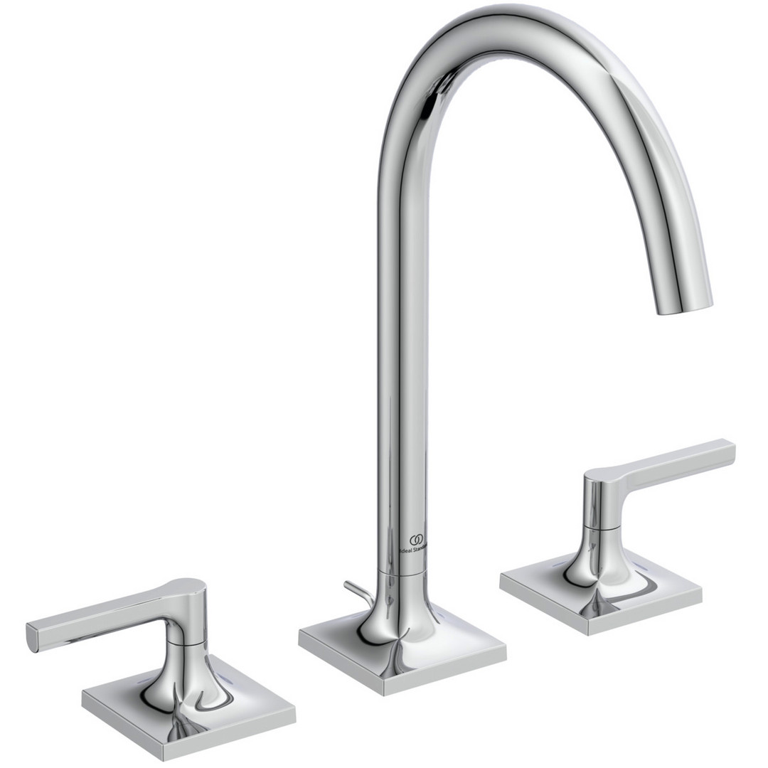 Ideal-Standard 3-Loch-Waschtisch-Armatur Joy Neo Hebelgriffe, Ausladung 168mm, mit Metall-Ablaufgarnitur, chrom W318402