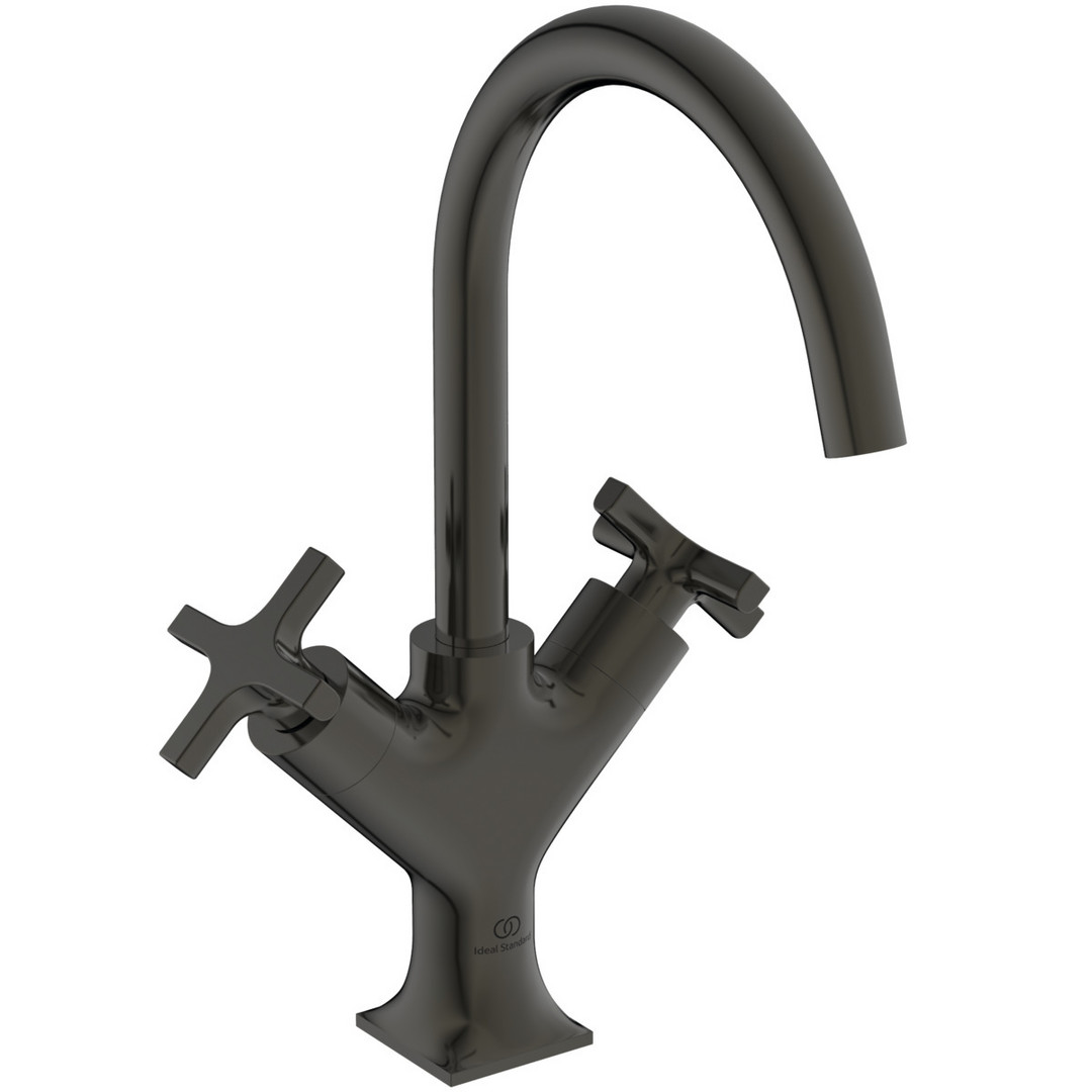 Ideal-Standard Waschtisch-Zweigriff-Armatur Joy Neo Kreuzgriffe, Ausladung 169mm, ohne Albaufgarnitur, magnetic grey W318417