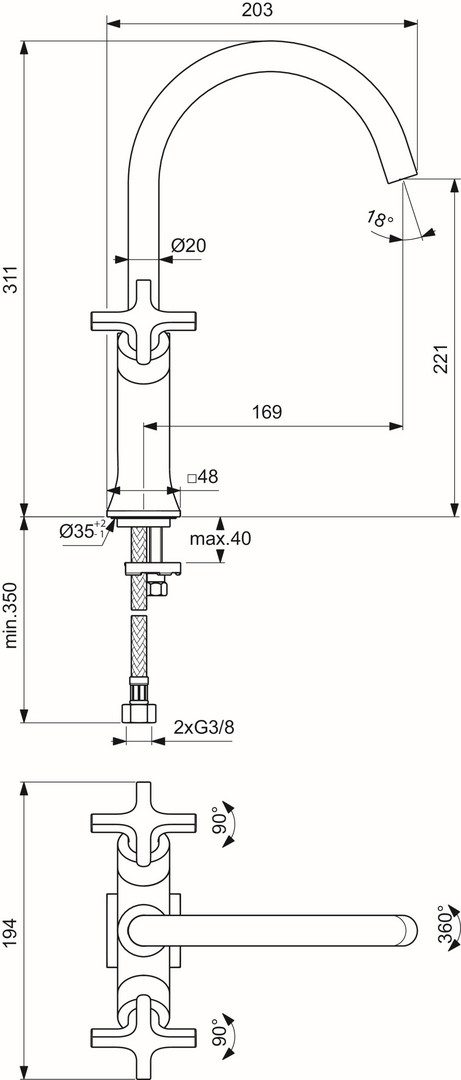 | Aufbauhöhe Unterkante Hahnauslass | 221 mm |
