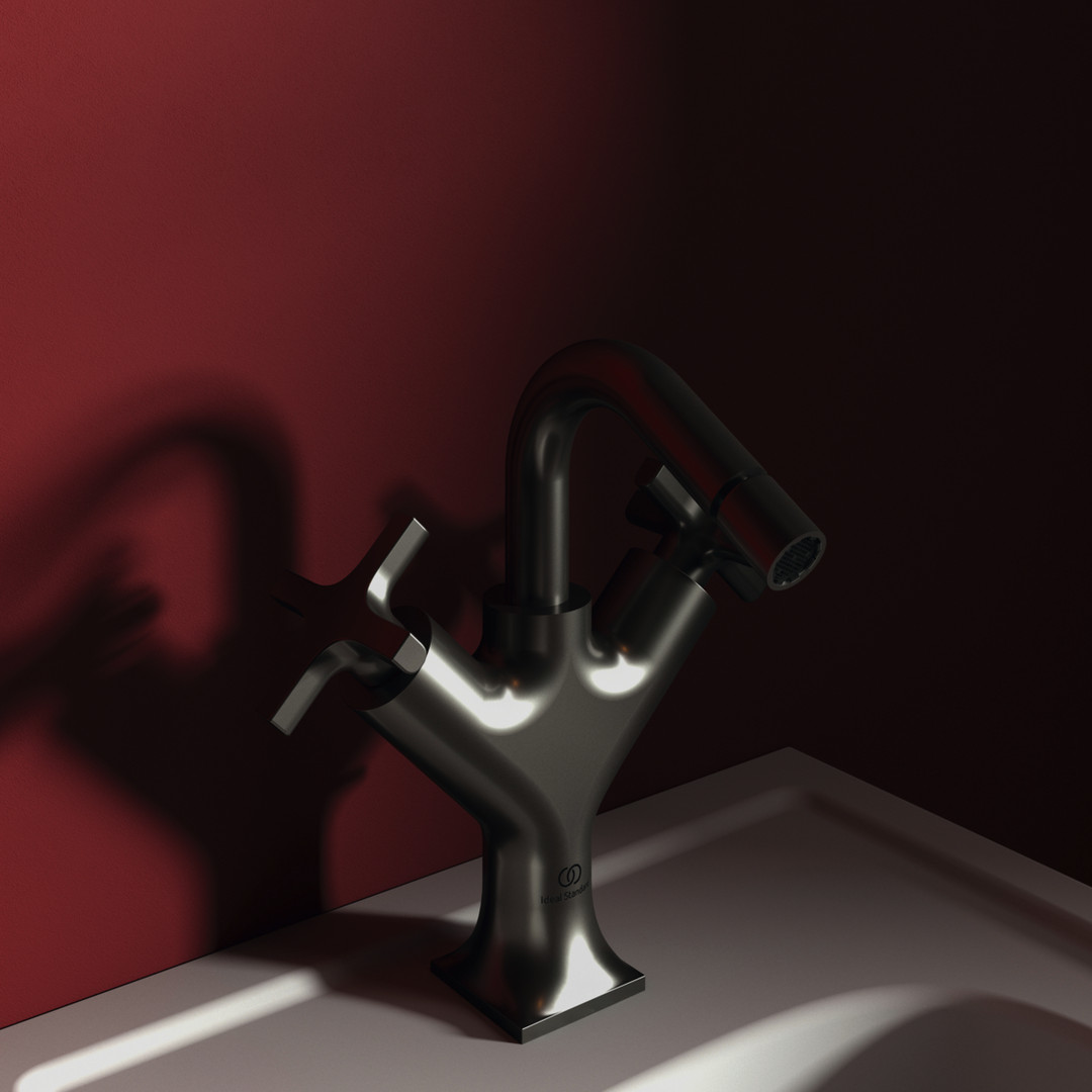 Ideal-Standard Bidet-Einhebelmischer Joy Neo mit Ablaufgarnitur, Kreuzgriffe, Ausladung 115mm, magnetic grey W318427