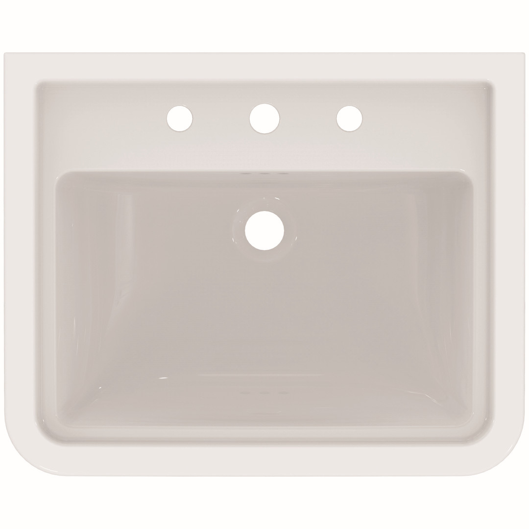 Kristallporzellan, Hahnlöcher mittig durchgestochen, mit 3-Loch-Überlauf (rund), Befestigungsart Stockschrauben, Norm DIN EN 14688 CL 25, DIN EN 31