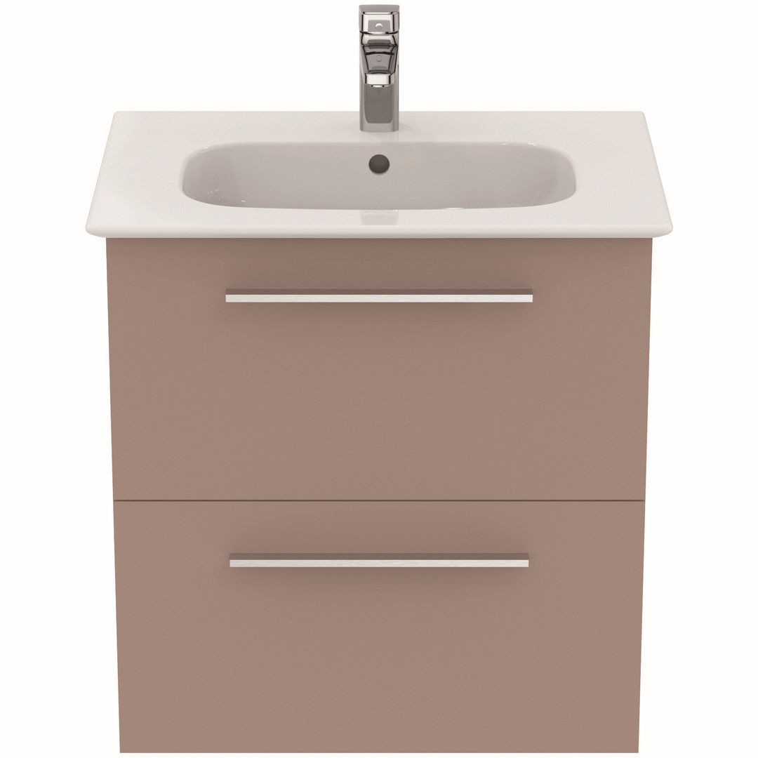 Ideal-Standard Möbelwaschtisch-Paket i.life A 64x46x64,5cm, 1 Hahnloch, Griff Chrom gebürstet, greige matt W34723