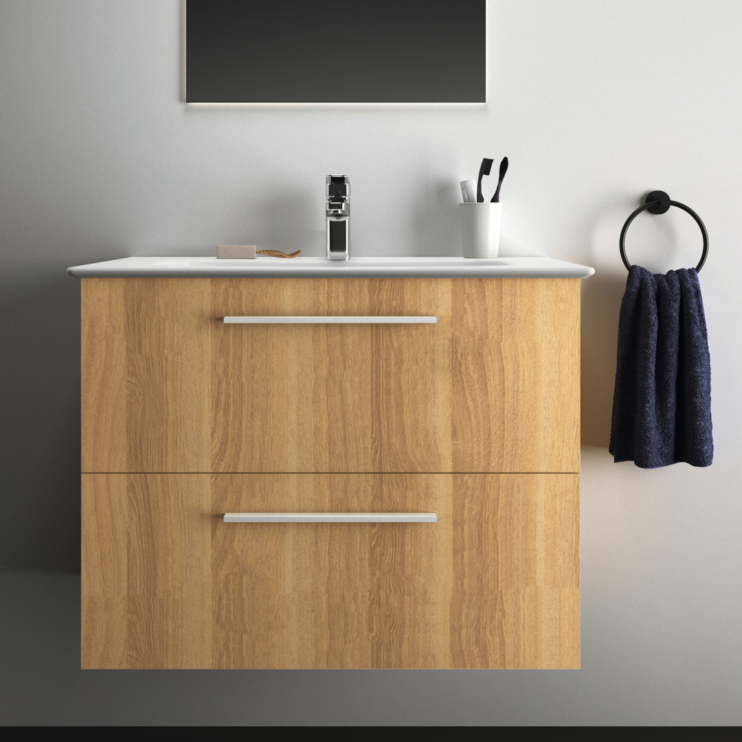Ideal-Standard Möbelwaschtisch-Paket i.life A 84x46x64,5cm, 1 Hahnloch, Griff Chrom gebürstet, Eiche natur W34736