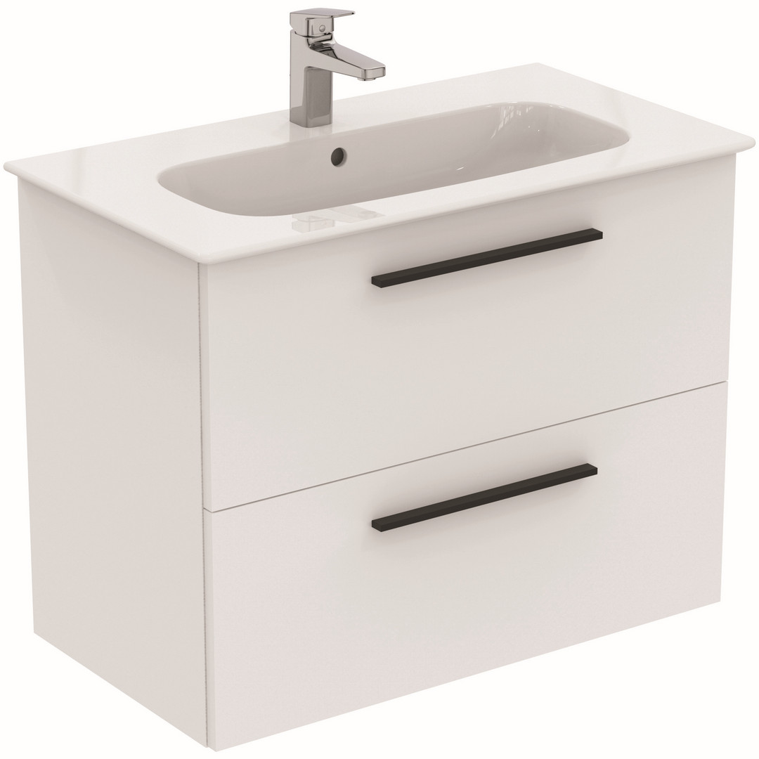 Ideal-Standard Möbelwaschtisch-Paket i.life A 84x46x64,5cm, 1 Hahnloch, Griff schwarz matt, weiß matt W34737