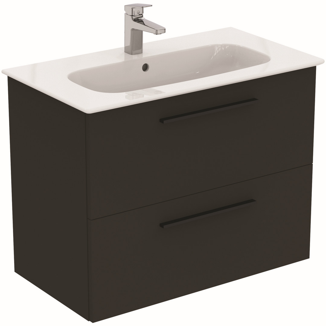 Ideal-Standard Möbelwaschtisch-Paket i.life A 84x46x64,5cm, 1 Hahnloch, Griff schwarz matt, carbongrau matt W34739