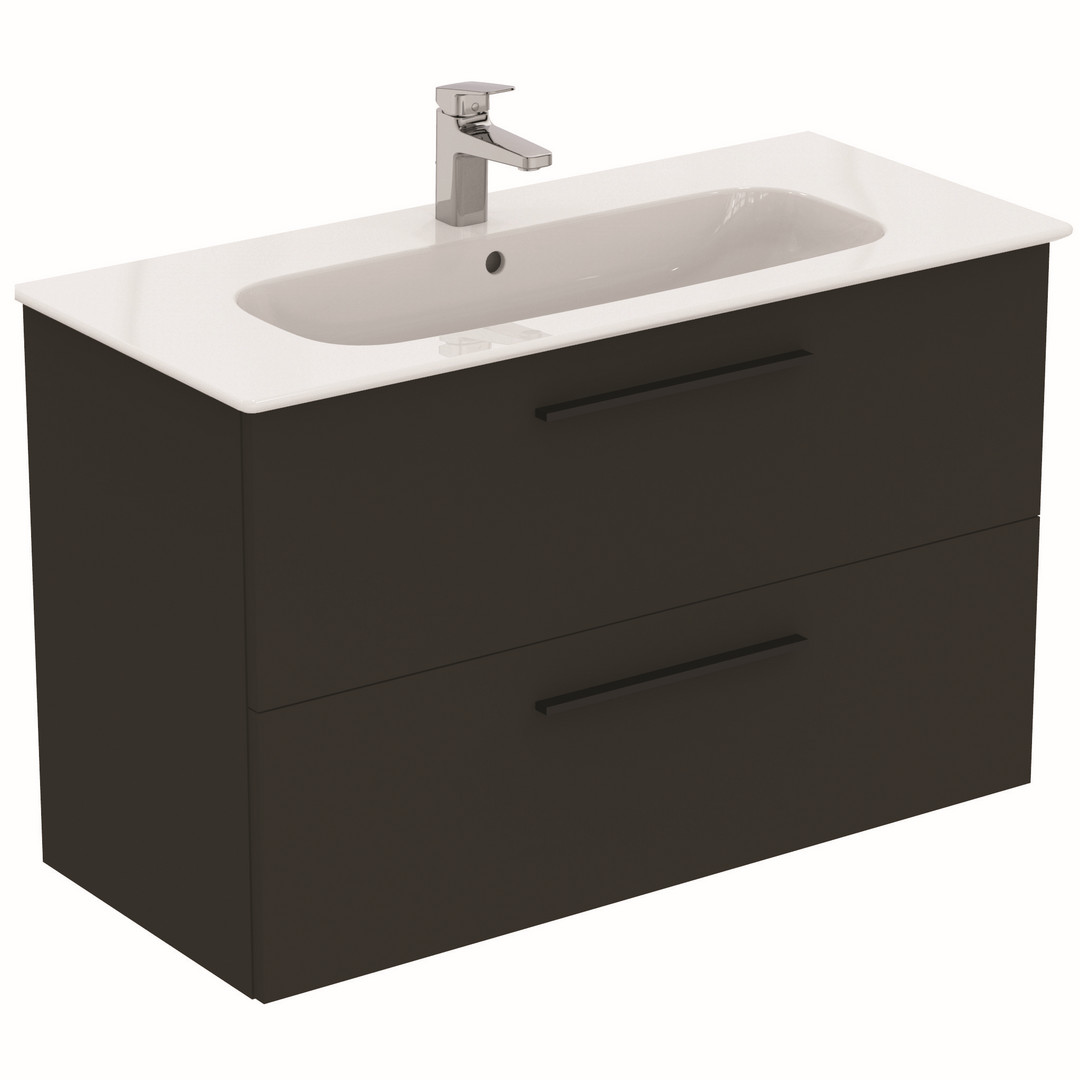Ideal-Standard Möbelwaschtisch-Paket i.life A 104x46x64,5cm, 1 Hahnloch, Griff schwarz matt, carbongrau matt W34749