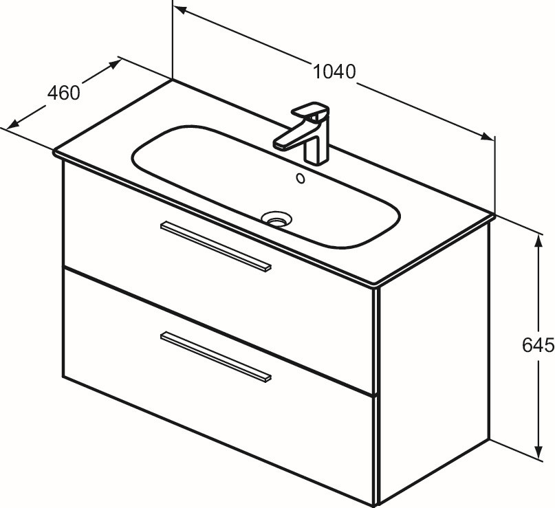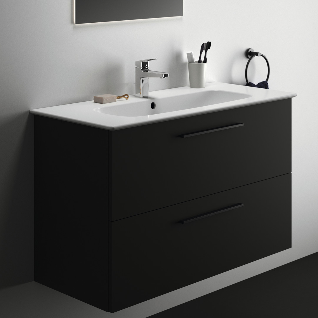 Ideal-Standard Möbelwaschtisch-Paket i.life A 104x46x64,5cm, 1 Hahnloch, Griff schwarz matt, weiß matt W34747