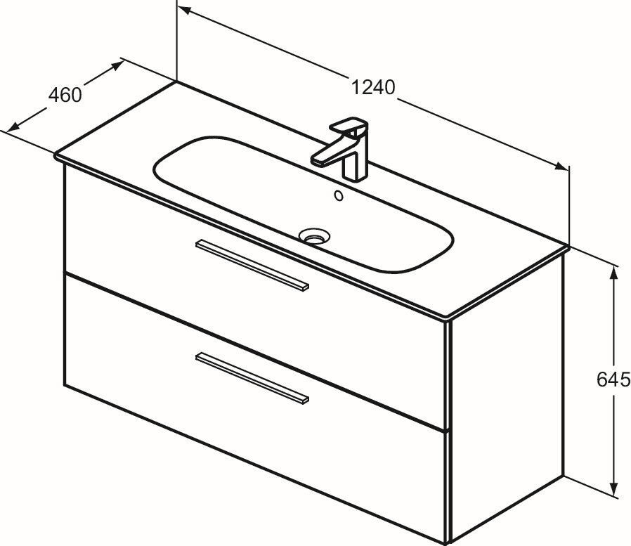 Ideal-Standard Möbelwaschtisch-Paket i.life A 124x46x64,5cm, 1 Hahnloch, Griff Chrom gebürstet, weiß matt W34752