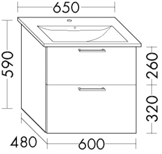 für Venticello 4124 65 xx I 4124 66 xx I 4124 67 xx, Schublade oben mit Siphonausschnitt, Höhe 260 mm, Tiefe 300 mm, Auszug unten, Tiefe 350 mm