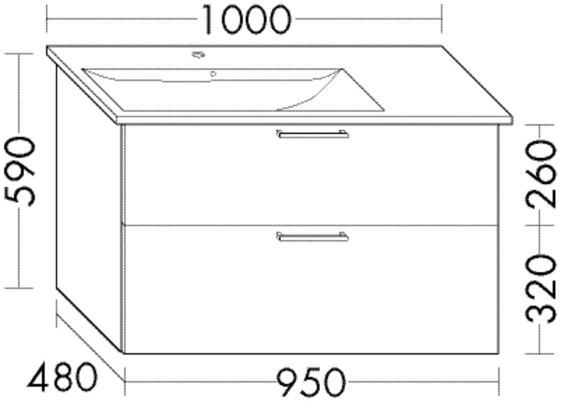 Schublade oben, mit Siphonausschnitt, Tiefe 300 mm, Auszug unten, Tiefe 350 mm