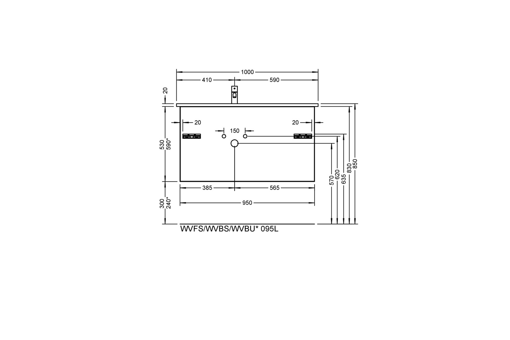 Schublade oben, mit Siphonausschnitt, Tiefe 300 mm, Auszug unten, Tiefe 350 mm