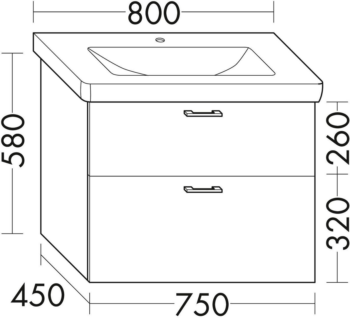 Burgbad Nurro Pure Waschtisch-Unterschrank 58x75x45cm, 1 Schublade/1 Auszug, Eiche Dekor Cashmere W389063
