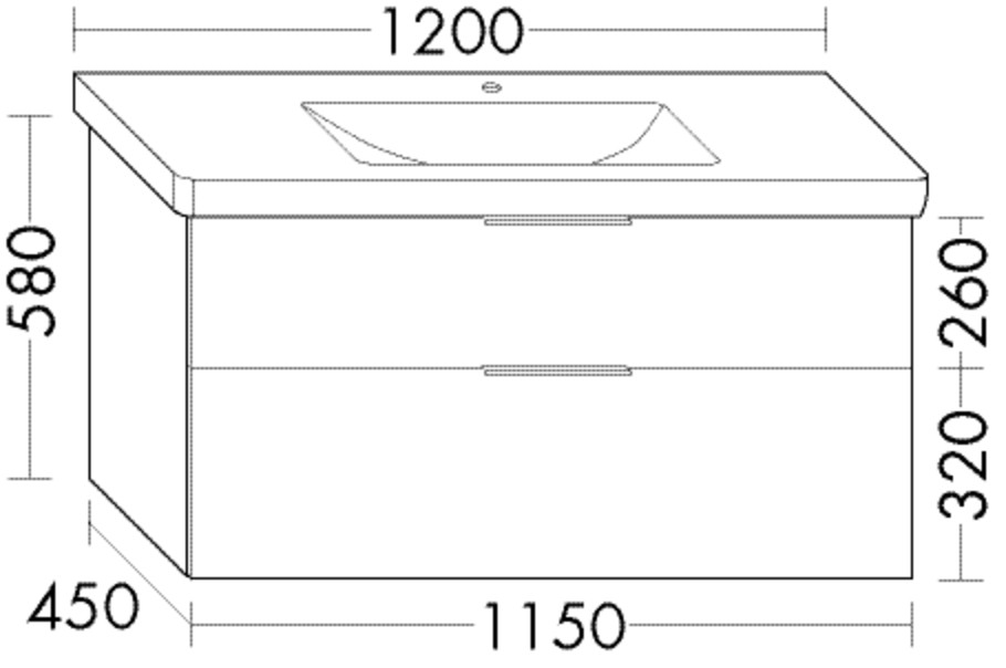 Burgbad Nurro Pure Waschtisch-Unterschrank 58x115x45cm, 1 Schublade/1 Auszug, Weiß Hochglanz W389067