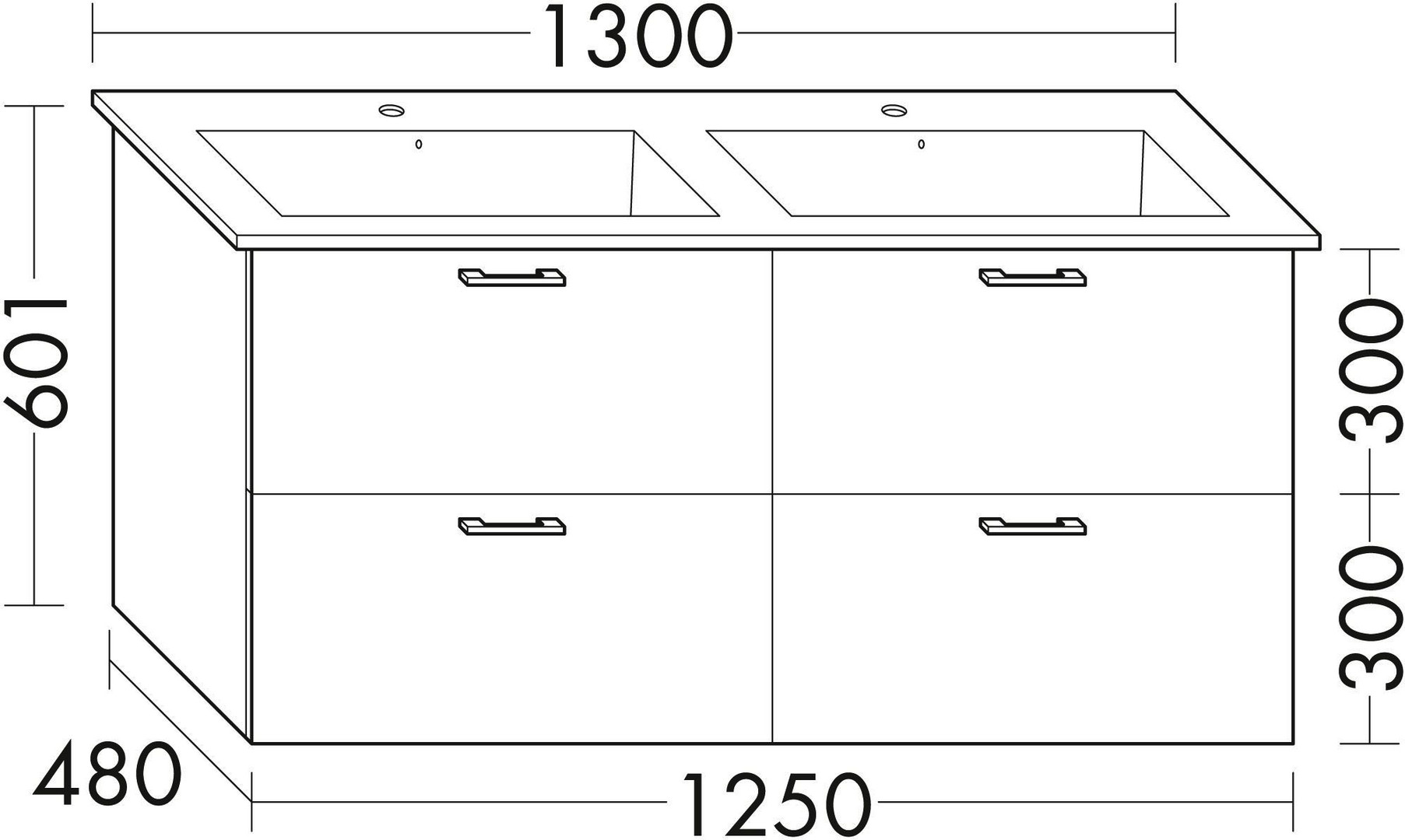 Burgbad Nurro Pure Waschtisch-Unterschrank 60,1x125x48cm, 2 Schubladen/2 Auszüge, Weiß Hochglanz W389088