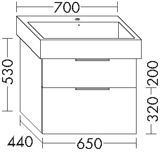 Schublade oben, mit Siphonausschnitt, Auszug unten