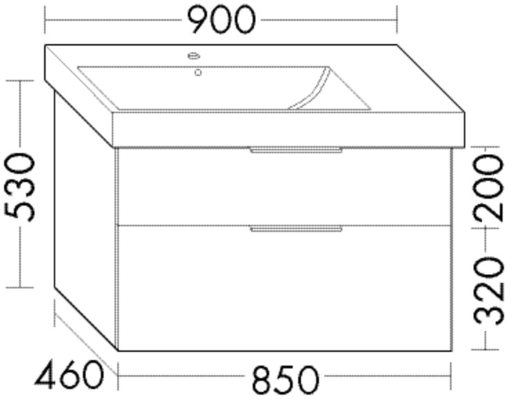 Schublade oben, mit Siphonausschnitt, Auszug unten