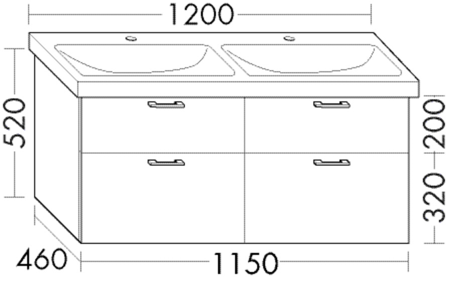Schubladen oben, mit Siphonausschnitt, Auszüge unten