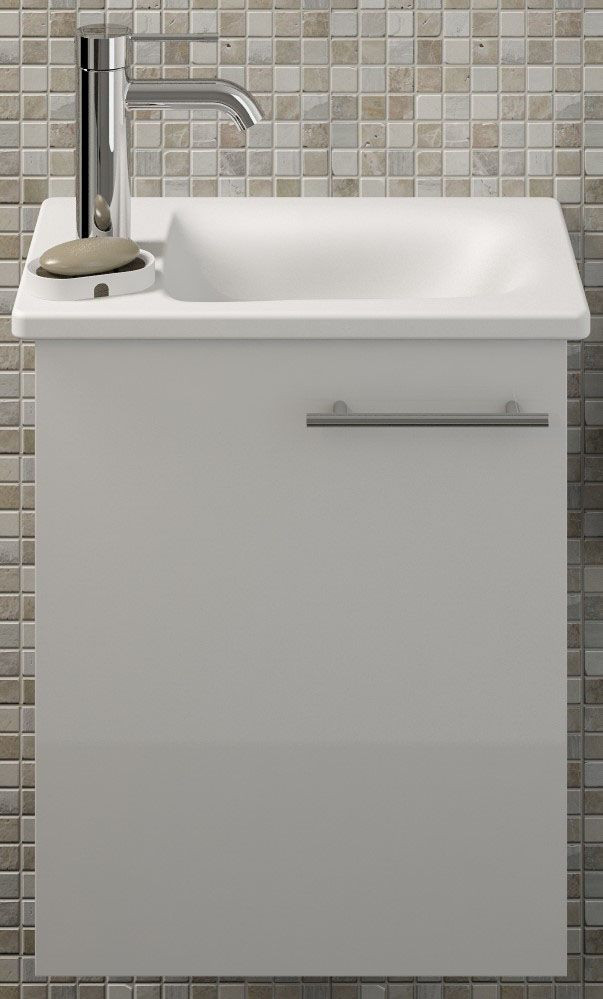 Burgbad Nurro Pure Express Waschtisch-Unterschrank-Set 43cm, 1 Tür, links, Keramik-Waschtisch, alpinweiss, Weiß Hochglanz W388961