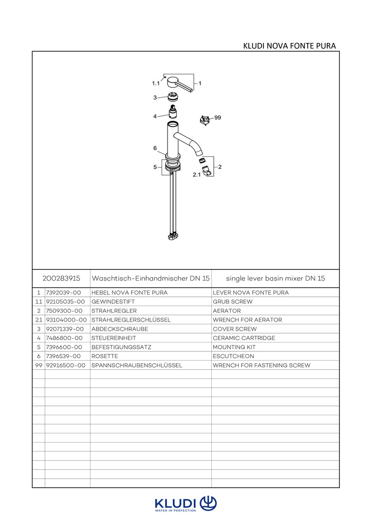 KLUDI Nova Fonte Pura Waschtisch-Einhebelmischer ohne Ablaufgarnitur, chrom W324431